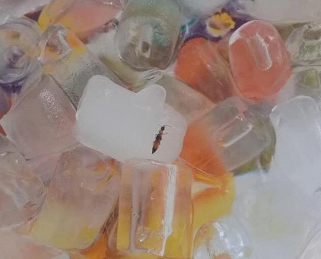 Kiến ba khoang trong viên đá lạnh tại quán nước tòa A2- KTX khu A. Ảnh: PHAN YÊN