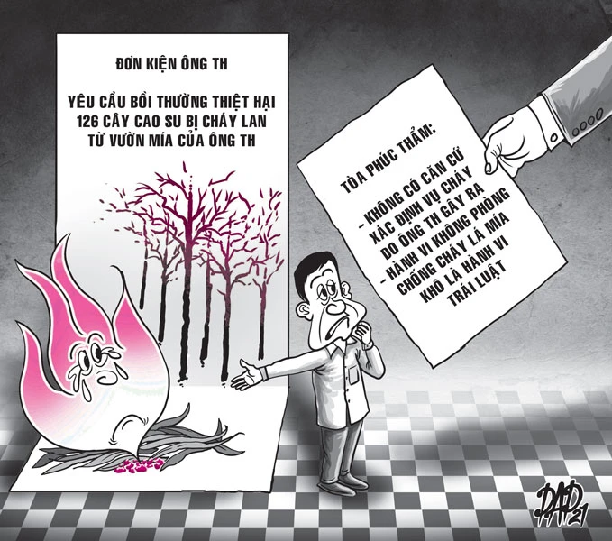 Cũng theo tòa phúc thẩm, pháp luật không quy định bắt buộc người trồng mía, người trồng cao su phải thực hiện việc phòng cháy trong quá trình sản xuất, thu hoạch. Việc phòng cháy là do ý thức của các chủ thể nhằm bảo vệ tài sản của mình, tránh gây thiệt hại cho người khác. Đây không phải là quy định bắt buộc nên không thể coi hành vi không phòng chống cháy lá mía khô của ông Th là hành vi trái pháp luật được.