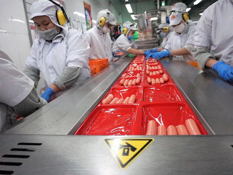 Các doanh nghiệp, doanh nhân đã thể hiện năng lực, sự sáng tạo, đổi mới để vượt qua khó khăn do dịch COVID-19 gây ra. Trong ảnh: Dây chuyền sản xuất xúc xích của Vissan, một trong những đơn vị vừa được vinh danh. Ảnh: TÚ UYÊN