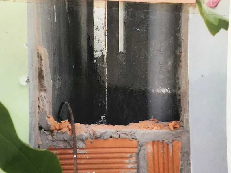 Khoảng hở giữa nhà nguyên đơn và bị đơn trên giấy là 0,7 m nhưng thực tế chỉ còn 0,3 m. Ảnh: NN