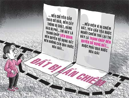 Trở lại vụ việc trên, luật sư Cao Quang Thuần (Đoàn Luật sư TP.HCM) nhận xét đúng ra các tòa phải xác minh kỹ hơn trước khi ra quyết định. Bởi lẽ từ vụ việc của bà N. sẽ có hai tình huống được đặt ra: Nếu bà N. đã có căn cứ chứng minh hơn 83 m2 đất bị lấn chiếm thuộc quyền sử dụng hợp pháp của mình (đất đã được cấp giấy đỏ, có các giấy tờ khác theo quy định hoặc vợ chồng bà T. thừa nhận…) và chỉ yêu cầu tòa buộc vợ chồng bà T. tháo dỡ toàn bộ hàng rào trụ xi măng trên phần đất lấn chiếm, bồi thường tài sản đã bị chặt phá thì thuộc trường hợp tranh chấp liên quan đến quyền sử dụng đất, không phải tiến hành hòa giải tại UBND cấp xã trước khi khởi kiện.