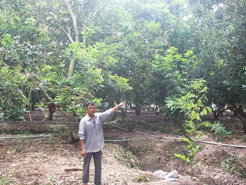 Ông Nguyễn Sơn Hà không muốn cho ba người em con chú ruột kéo dây điện qua mảnh vườn của mình. Ảnh: ĐÔNG HÀ