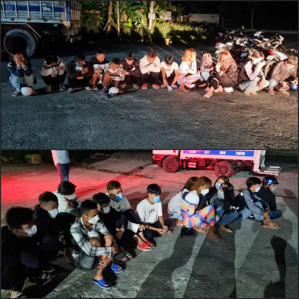 Ngay lập tức, Công an huyện Châu Thành đã triển khai lực lượng chốt chặn, vây bắt. Khi thấy công an, nhiều người trong nhóm tri hô và một số thanh niên đã tăng ga bỏ chạy.