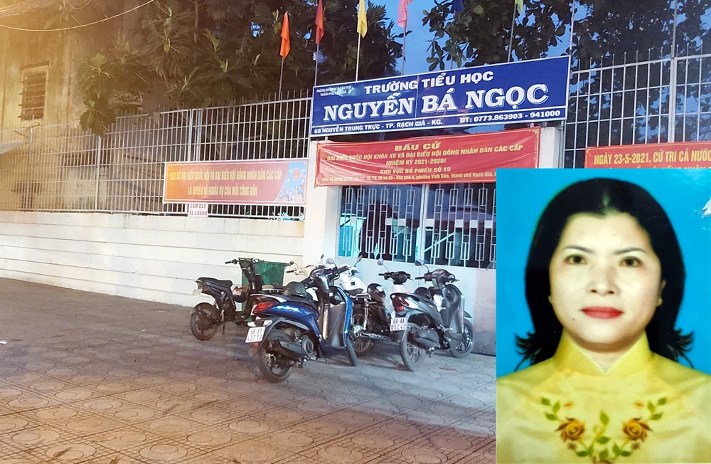 Trường TH Nguyễn Bá Ngọc (ảnh lớn) và nghi phạm Trần Thị Liên (ảnh nhỏ). Ảnh: TRUNG VŨ