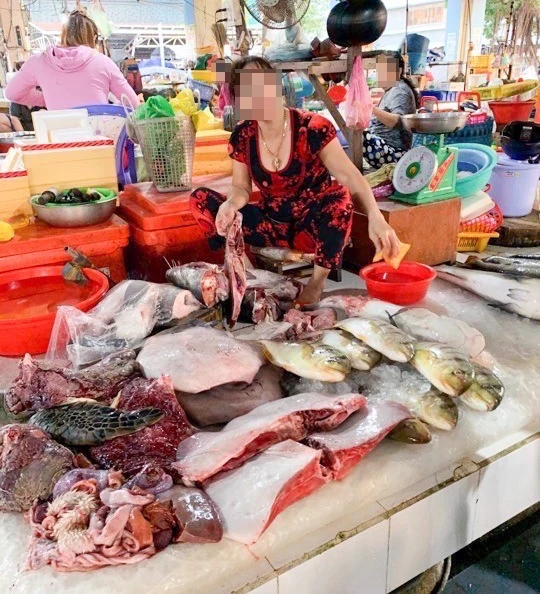 Liên quan đến thông tin một tiểu thương bán thủy, hải sản được cho là ở phường Pháo Đài (TP Hà Tiên) đã xẻ thịt một con rùa xanh (Chelonia Mydas) bán công khai tại chợ, trưa 7-2, trao đổi với PLO qua điện thoại, ông Mai Quốc Thắng, Phó Chủ tịch UBND TP Hà Tiên (tỉnh Kiên Giang), cho hay địa phương đã biết sự việc, Công an thành phố đã tiến hành lập biên bản vụ việc và đang xử lý.