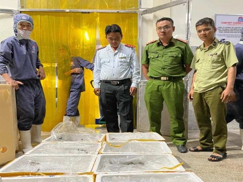 Đoàn kiểm tra đã ra quyết định tạm giữ tang vật là 100 kg tôm thẻ chân trắng có chứa tạp chất agar.