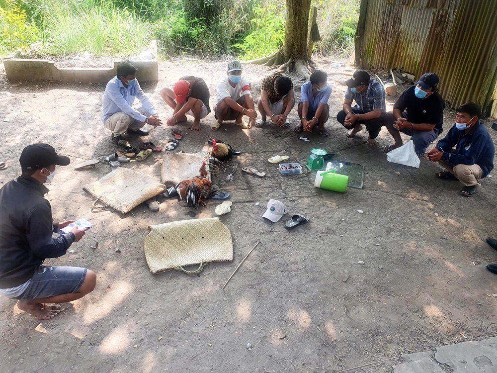 Trước đó, ngày 28-1, Công an huyện Tân Hiệp bắt quả tang một tụ điểm đá gà ăn tiền tại bãi đất trống thuộc ấp Kinh 2B, xã Tân An. Tại hiện trường, công an tạm giữ 16 người, hai con gà và số tiền gần 40 triệu đồng cùng một số tang vật khác.