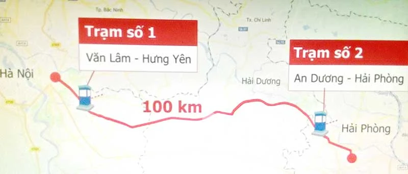 Vị trí hai trạm thu phí bị đề nghị xóa trên quốc lộ 5. Đồ họa: plo.vn