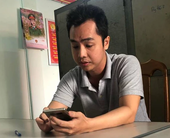 Ông Huỳnh Công Thoại tại Công an phường Xương Huân sau khi hành hung luật sư. Ảnh: TƯỜNG LINH