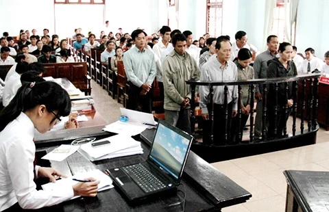 Phiên tòa sơ thẩm vụ lừa đảo ở Công ty An Khang tháng 1-2015. Ảnh: GIA TUỆ