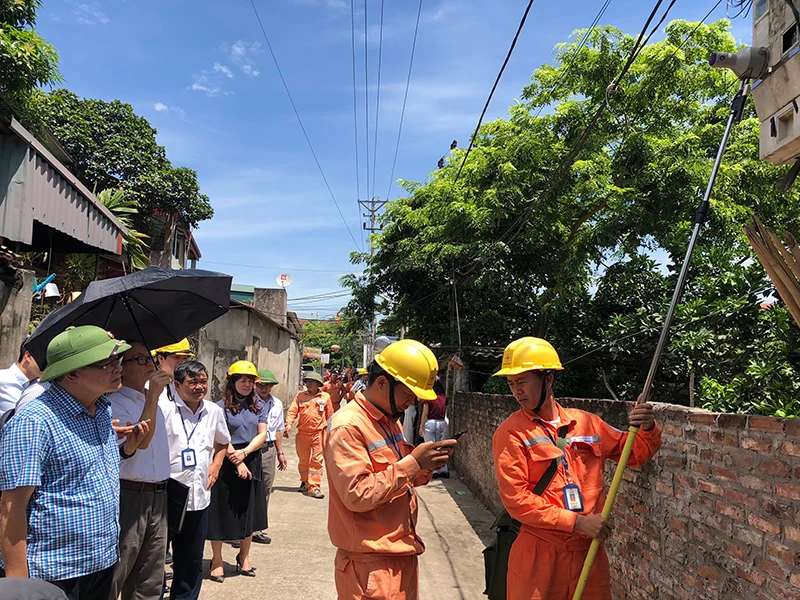 Tập đoàn Điện lực Việt Nam kiểm tra tại một số công ty điện lực trực thuộc Tổng Công ty Điện lực Hà Nội. Ảnh: NGÔ CƯỜNG
