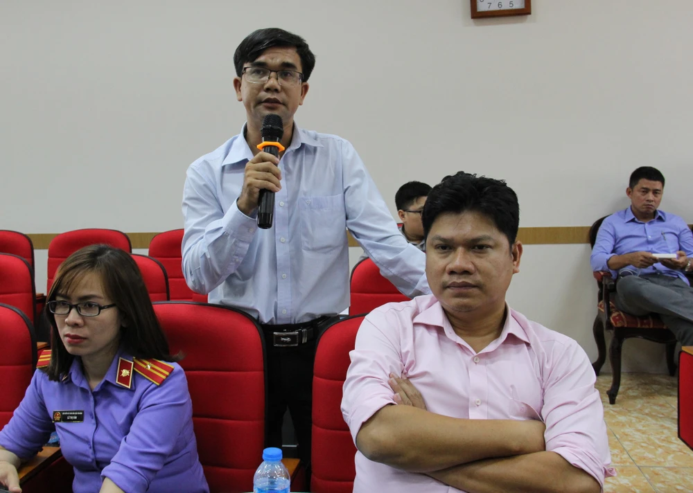 Ông Đặng Quang Sang, Trưởng phòng tư pháp huyện Hóc Môn phát biểu tại hội nghị về Thừa phát lại. Ảnh: K.P