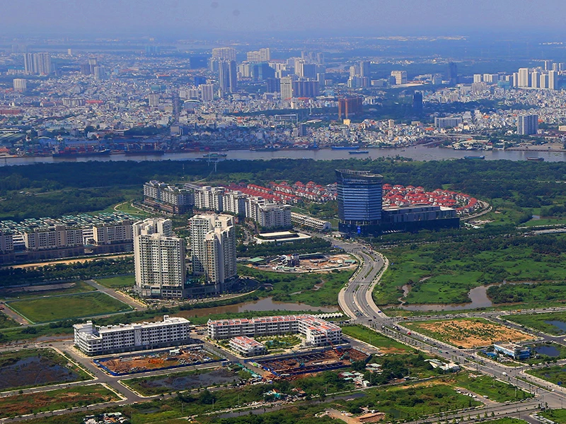 Một góc khu đô thị mới Thủ Thiêm nhìn từ trên cao. Ảnh: HOÀNG GIANG
