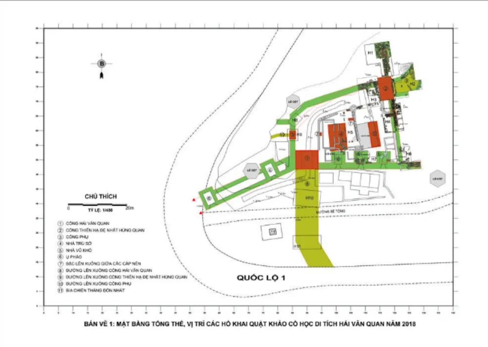 Tổng thể mặt bằng khai quật di tích Hải Vân Quan. Ảnh: CT.
