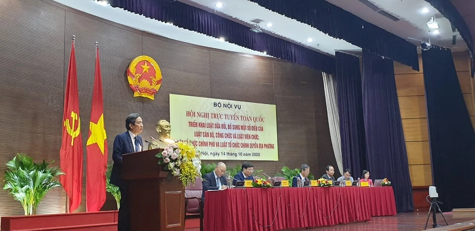Sáng 14-10, Bộ Nội vụ tổ chức Hội nghị trực tuyến toàn quốc triển khai Luật sửa đổi, bổ sung một số điều của Luật Cán bộ, công chức và Luật Viên chức; Luật Tổ chức Chính phủ và Luật Tổ chức chính quyền địa phương.