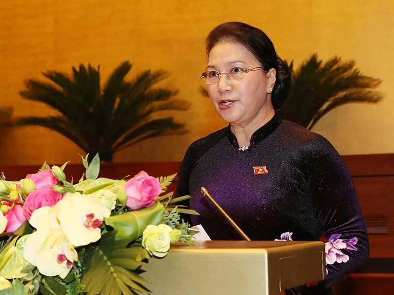 Chủ tịch Quốc hội Nguyễn Thị Kim Ngân phát biểu bế mạc kỳ họp thứ 8, Quốc hội khóa XIV. Ảnh: TTXVN