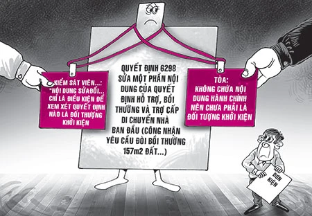 Đồng tình, ThS Dương Hoán (giảng viên môn Tố tụng hành chính Trường ĐH Luật TP.HCM) bổ sung: Cần phải hiểu một quyết định hành chính là đối tượng khởi kiện khi quyết định đó có chứa đựng nội dung cụ thể mà người khởi kiện cho rằng quyền lợi hợp pháp của họ bị xâm phạm. Ở đây Quyết định 6298 có phần được sửa đổi nhưng phần sửa đổi này chỉ là phương hướng chứ chưa phải là nội dung cụ thể để ông Triệu cho rằng quyền lợi hợp pháp của ông bị xâm phạm. Mặt khác, phần sửa đổi trong Quyết định 6298 lại không hề xâm phạm đến quyền lợi hợp pháp của ông Triệu (công nhận chứ không bác bỏ) nên bản thân Quyết định 6298 không thể là đối tượng khởi kiện trong án hành chính.