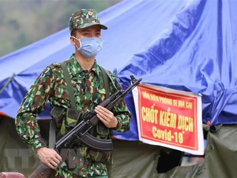 Chiến sĩ Đồn biên phòng Si Ma Cai, Bộ đội biên phòng Lào Cai canh gác tại các chốt kiểm dịch. Ảnh: DƯƠNG GIANG/TTXVN