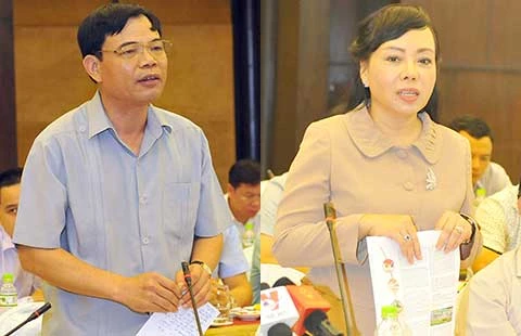Ông Nguyễn Xuân Cường được giới thiệu thay ông Cao Đức Phát giữ vị trí bộ trưởng NN&PTNT(trái)và bà Nguyễn Thị Kim Tiến được giới thiệu tiếp tục giữ “tư lệnh” ngành y tế. Ảnh: H.LONG