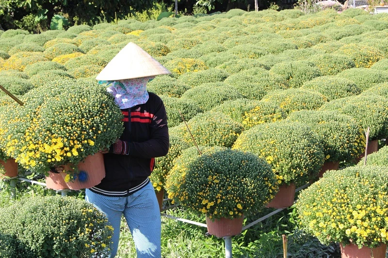 “Mùa tết năm trước tôi trồng chỉ 3.000 chậu thôi, nhưng thấy lợi nhuận đem lại cao nên năm nay tôi quyết định tăng số lượng chậu cúc lên 4.000 chậu. Tính đến giờ này hiệu quả đạt 80%. Và nếu năm nay thương lái mua được giá như mọi năm khoảng từ 70.000 – 75.000 đồng/chậu thì năm nay tôi cũng kiếm lời được khoảng hơn 200 triệu đồng”- Anh Út phấn khởi nói.