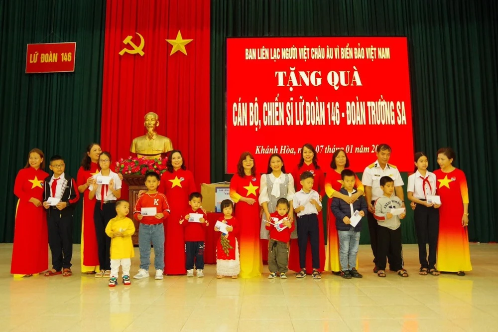 Đồng thời đoàn trao tặng 10 suất quà cho học sinh là con của sĩ quan, quân nhân chuyên nghiệp có hoàn cảnh khó khăn đang làm nhiệm vụ tại quần đảo Trường Sa, mỗi suất trị giá 2 triệu đồng.