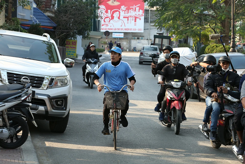 Khi thời gian vừa được bấm, nam diễn viên liền co giò chạy đến thở không ra hơi. Chạy được một đoạn thấy hai bạn nhỏ đi xe đạp ngang qua anh liền đuổi chủ nhân của chiếc xe xuống và cuỗm luôn chiếc xe đạp để chạy đến địa điểm yêu cầu.