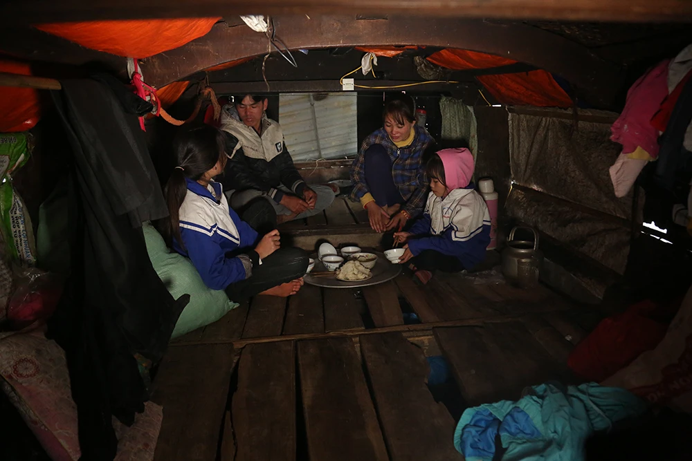 10 năm trước, anh Bình và vợ là chị Nguyễn Thị Thái (32 tuổi) được gia đình hai bên góp cho một chiếc thuyền trị giá năm triệu để sinh sống lênh đênh trên sông.