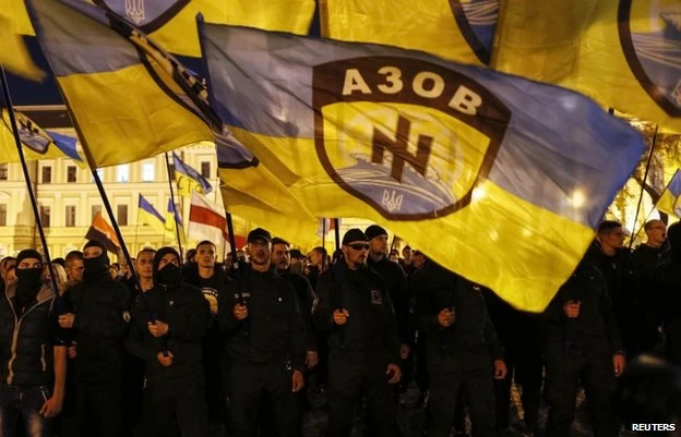Tiêu biểu như tiểu đoàn Azov, được tài trợ bởi tài phiệt Taruta và Kolomoisky sử dụng Wolfsangel (biểu tượng của sư đoàn SS-Đức Quốc Xã) làm Logo. Các thành viên của tiểu đoàn này đã có lúc tuyên bố “đưa chiến tranh đến Kiev” và “Ukraine cần một nhà độc tài thật sự, chấp nhận đổ máu để thống nhất đất nước”