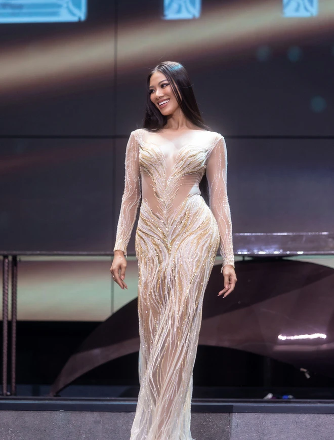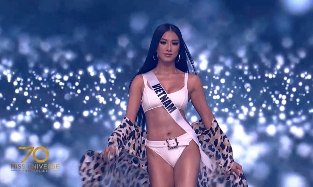 Dù là thí sinh cuối cùng xuất hiện nhưng người xem không thể phủ nhận sức hút từ á hậu Kim Duyên. Cô hô vang hai tiếng "Việt Nam" thể hiện niềm tự hào dân tộc.