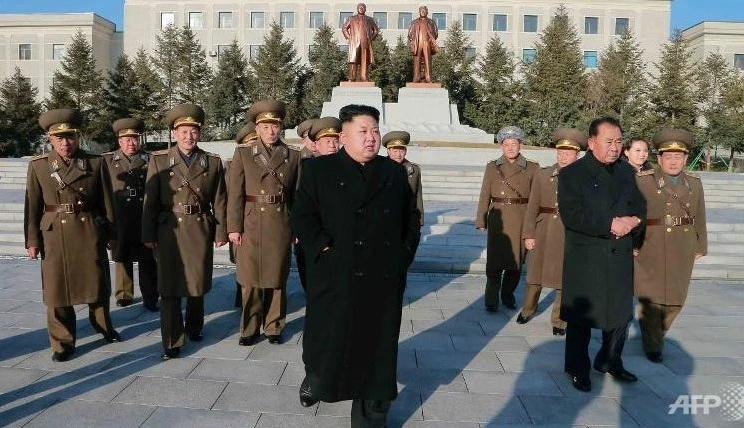 Chủ tịch Kim Jong-un trong chuyến thăm quân chủng Phòng không - Không quân của nước này. Ảnh do Thông tấn xã Trung ương Triều Tiên cung cấp ngày 13/01/2015.
