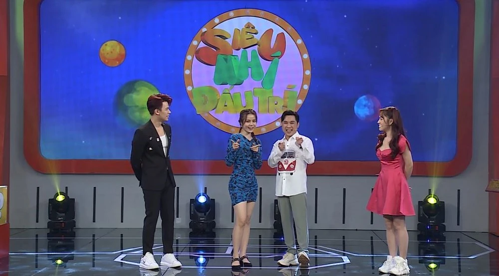 MC Trần Anh Huy, Kim Thành, Don Nguyễn và MC Puka tại Siêu nhí đấu trí. Ảnh: CTCC