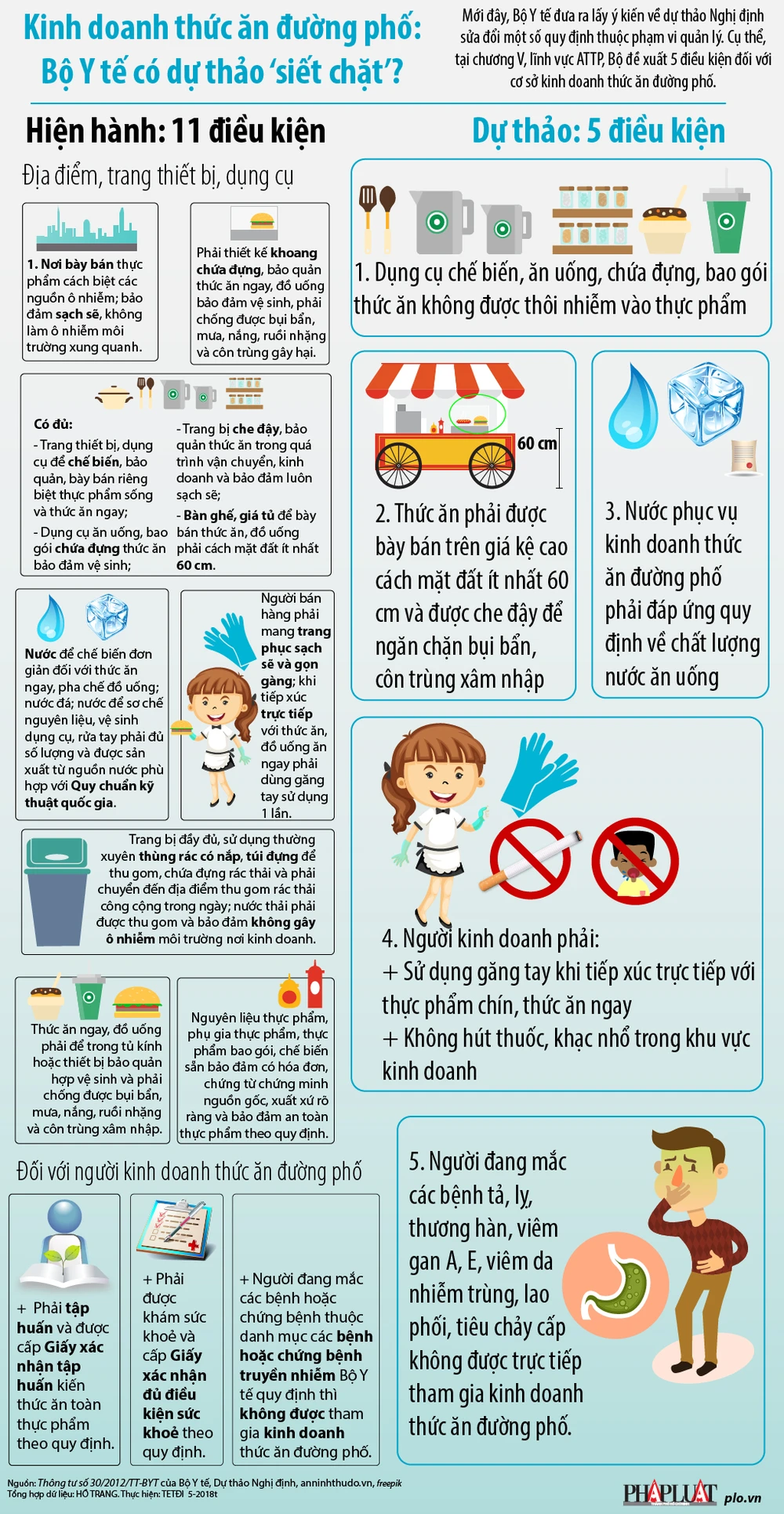 (PLO)- Trước thông tin Bộ Y tế đề xuất “siết chặt” điều kiện kinh doanh ăn uống đường phố, đại diện Cục An toàn thực phẩm (ATTP) - Bộ Y tế cho biết điều này là không chính xác mà dự thảo mới còn đơn giản hơn quy định cũ nhiều.