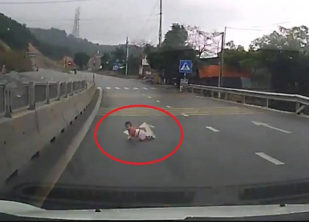 Mạng xã hội Facebook vừa đăng tải một clip dài khoảng 2 phút ghi lại cảnh em bé khoảng vài tháng tuổi đang bò lổm nhổm trên đường. Thời điểm này, rất nhiều phương tiện đang di chuyển qua với tốc độ nhanh.