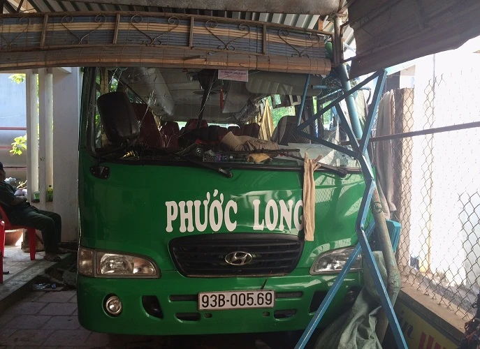 Vụ va chạm khiến cả hai xe bị hư hỏng nặng phần đầu. Xe khách giường nằm đi Gia Lai quay ngang đường, còn xe khách đi từ Phước Long thì lạc tay lái, đâm thẳng vào một con hẻm rồi lao vào nhà dân.