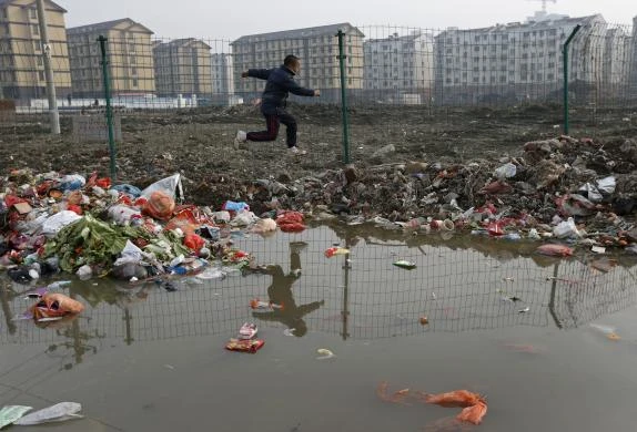 Một con mương thoát nước đầy rác tại một ngôi làng ở vùng ngoại ô của thành phố Gia Hưng, tỉnh Chiết Giang