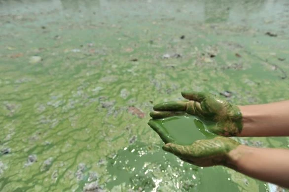 Nước hồ đầy tảo tại hồ Donghu ở Vũ Hán, tỉnh Hồ Bắc