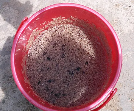 Mẫu nước thải do lực lượng chức năng lấy để kiểm nghiệm có dòi bò lúc nhúc. Ảnh: BN