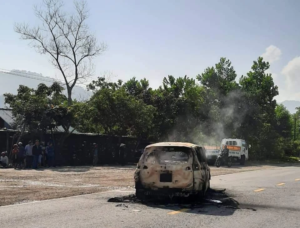 Hậu quả vụ tai nạn khiến hai người trên xe tử vong, chiếc xe bị thiêu rụi hoàn toàn.
