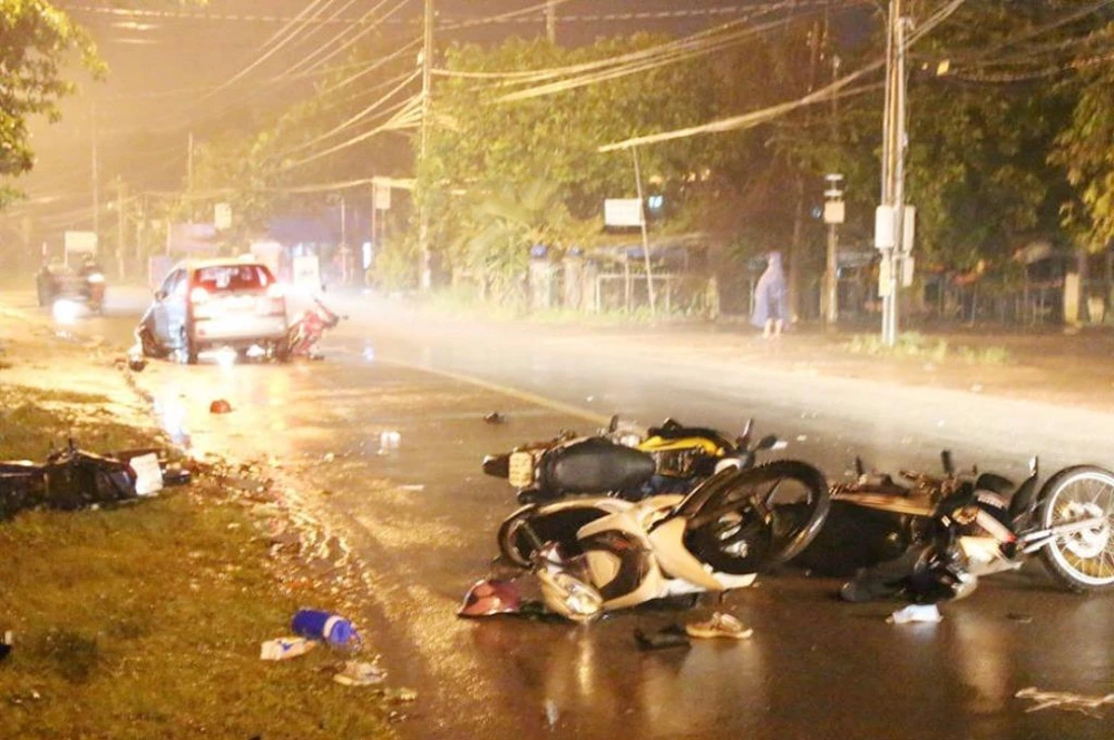 Theo thông tin ban đầu, khoảng 21 giờ đêm 18-10, ô tô 61A-397.90 chạy hướng từ Thái Hòa về Uyên Hưng. Khi xe đến trước UBND phường Thạnh Phước thì bất ngờ va chạm trực diện với sáu xe máy chạy theo chiều ngược lại.