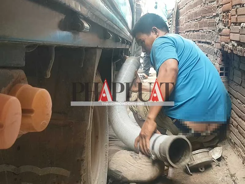 Trước đó, từ thông tin do PV báo Pháp Luật TP.HCM phản ánh, hàng chục trinh sát Đội Cảnh sát kinh tế Công an huyện Hóc Môn đã ập đến bãi đất trống sát căn nhà 361/70/125A thuộc ấp 6, xã Đông Thạnh, huyện Hóc Môn, bắt quả tang xe tải che mui biển số 54X-5256 đang xả thải phân hầm cầu xuống kênh Trần Quang Cơ.