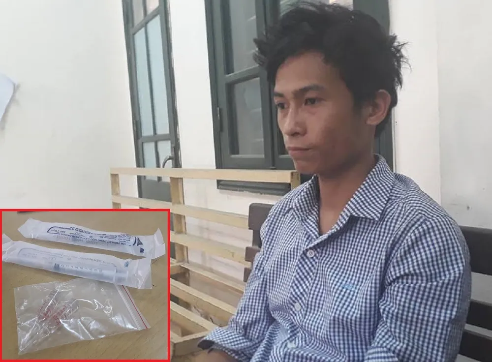 Tại đây, cảnh sát phát hiện trong cốp xe máy của nam thanh niên có nhiều kim tiêm và nước cất. Tiếp tục kiểm tra, lực lượng chức năng tìm thấy hai gói chứa chất bột trắng, nghi ma túy trong túi quần người này.