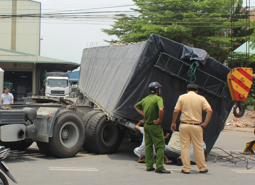 Vào khoảng 10 giờ sáng cùng ngày, xe container kéo theo rơ moóc 78R – 011.83 do tài xế Nguyễn Văn Việt (quê Phú Yên) điều khiển lưu thông trên đường ĐT 743. Khi đang lưu thông trên đường, chiếc xe bất ngờ đứt mối nối khiến rơ moóc bị tuột khỏi đầu kéo. Rơ moóc phía sau chở khoảng 30 tấn hàng rơi mạnh xuống, chắn ngang đường. Hành chục người đi đường kịp thời né tránh thoát nạn trong gang tấc.