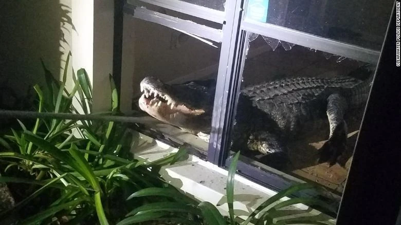 Trong một ngôi nhà ở thành phố Clearwater, bang Florida, bà cụ Mary Wischhusen, 77 tuổi, choàng tỉnh vào khoảng 3 giờ rưỡi sáng vì một tiếng động lớn. Khi thức dậy xem chuyện gì đã xảy ra, bà chạm mặt một con cá sấu lớn trong căn bếp.