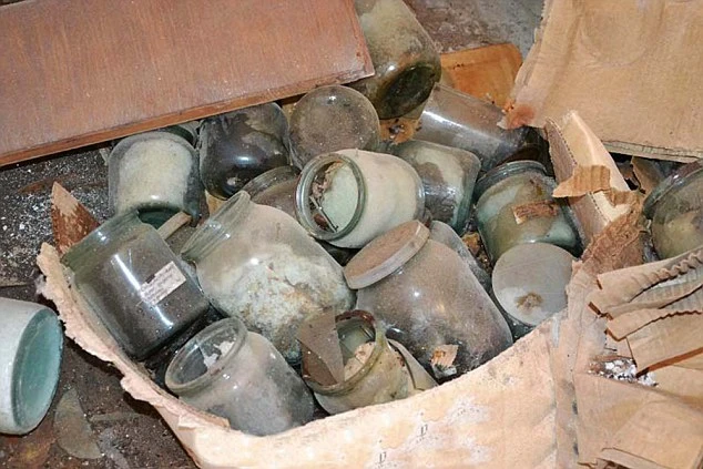 Những hũ chứa bộ phận cơ thể bị bỏ lại trên các kệ đầy bụi