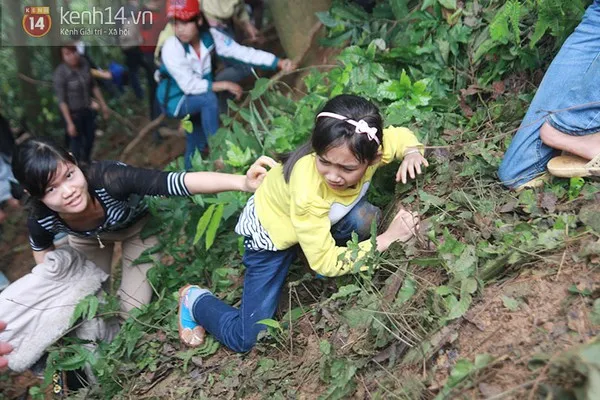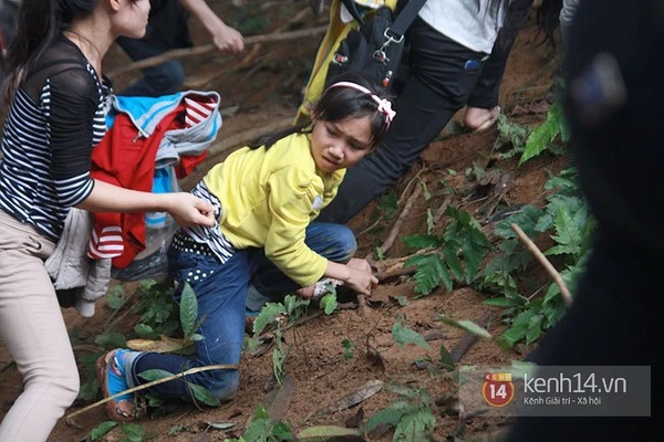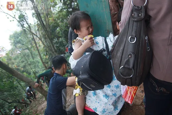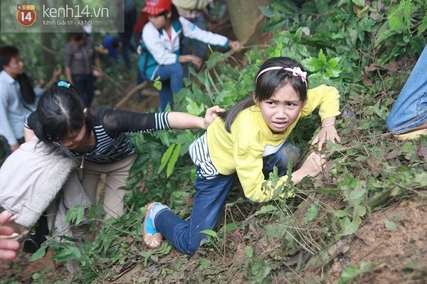 Bé gái này tỏ ra rất hoảng sợ khi phải leo những đoạn đường trơn, trượt, không có chỗ bám víu chắc chắn.
