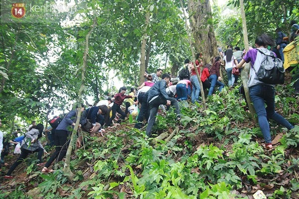 Dòng người phải nhích từng bước rất nhỏ, kéo dài hàng giờ liền trong khuôn viên của lối đi. Để kịp góp mặt, dâng hương tại các Đền chính thuộc khu di tích, du khách năm nay đã lựa chọn một hướng khác là... "đường rừng", bất chấp mọi cảnh báo nguy hiểm.