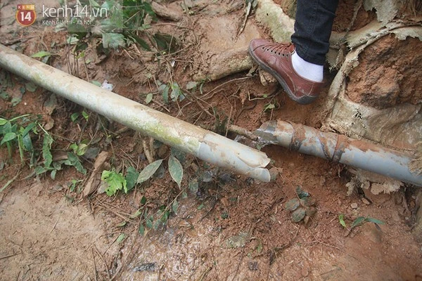 Do lượng người băng qua đoạn đường quá đông, đường ống dẫn nước thải đã bị vỡ.
