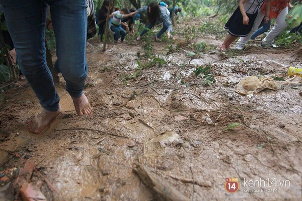 Cơn mưa buổi sáng sớm làm cho đường đất càng trở nên trơn trượt. Tuy nhiên, nước ở đoạn đường này không phải là nước mưa thông thường, đây là nước thải từ một nhà vệ sinh thải ra, du khách buộc phải trải qua đoạn đường này nếu muốn tiếp tục hành trình.