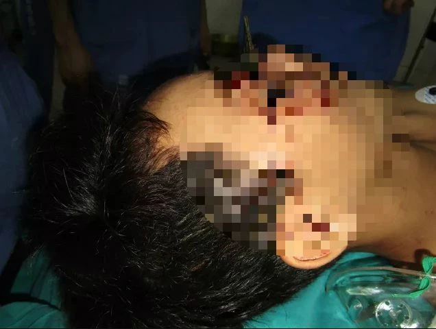 Nam thanh niên trước khi phẫu thuật với lưỡi cưa trên mặt