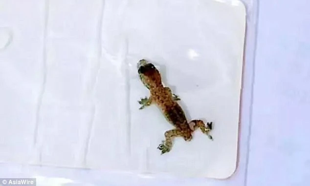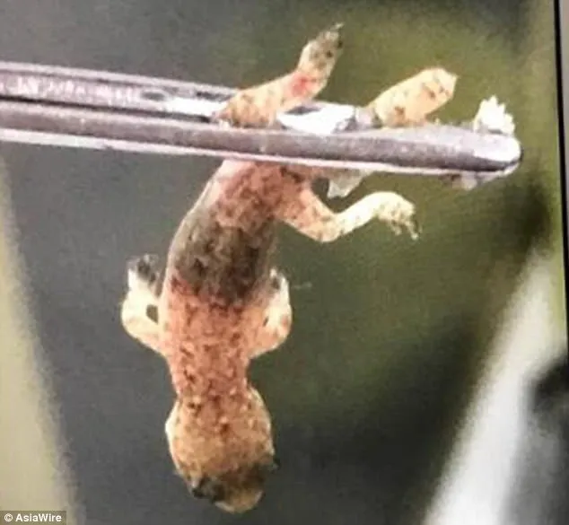 Con thạch sùng sống được gắp ra từ tai của bệnh nhân. Ảnh: AsiaWire